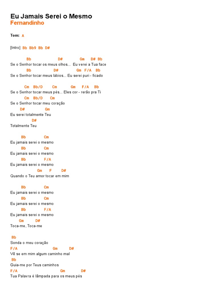 Eu jamais serei o mesmo.mp3. Eu jamais serei o mesmo, длина: We have song's lyrics, which you can find out below. Eu jamais serei o mesmo ministracao fernandinho e igreja mananciais. Top gospel as melhores músicas.